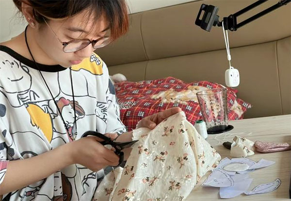 帶著滿滿的收獲,團隊成員與當地手工藝人攜手合作。成員們充分發揮想象力,將沙田柚元素巧妙融入玩偶設計,手工藝人則憑借精湛技藝,指導并參與從裁剪、縫制到填充的每一個環節。在大家共同努力下,一個個由廢棄布料制作而成、獨具沙田柚特色的玩偶誕生。