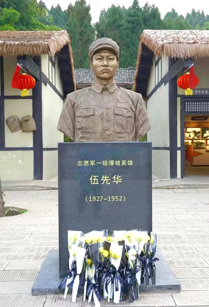 在莊嚴肅穆的故居陳列館,隊員們跟隨講解員腳步,透過銹跡斑斑的軍用水壺、泛黃的立功證書和珍貴影像資料,重溫了伍先華烈士的成長軌跡與英雄事跡。當聽到烈士在1952年朝鮮戰場"720高地"戰役中,為掩護部隊挺進,毅然抱起炸藥包與40余名敵軍同歸于盡的壯舉時,隊員們駐足凝視復原場景沙盤,深受震撼。"爆破班長伍先華用生命詮釋了何為真正的家國擔當,這堂行走的思政課讓我們讀懂了'最可愛的人'的精神密碼。"團隊隊長在交流會上動情說道。