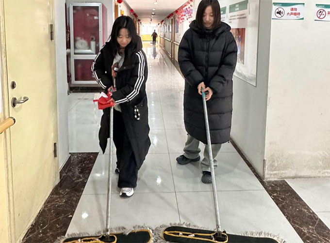 本次活動展開過程中,團隊到達地點后,成員們迅速分好組對養老院公共區域及老人居室進行清潔工作,積極清掃房間、活動場所,協助整理衣物及生活用品。針對部分腿腳不便的老人,志愿者每日定時送餐并清理餐后餐具。爭取為老人們提供一個更加干凈舒適的生活環境。