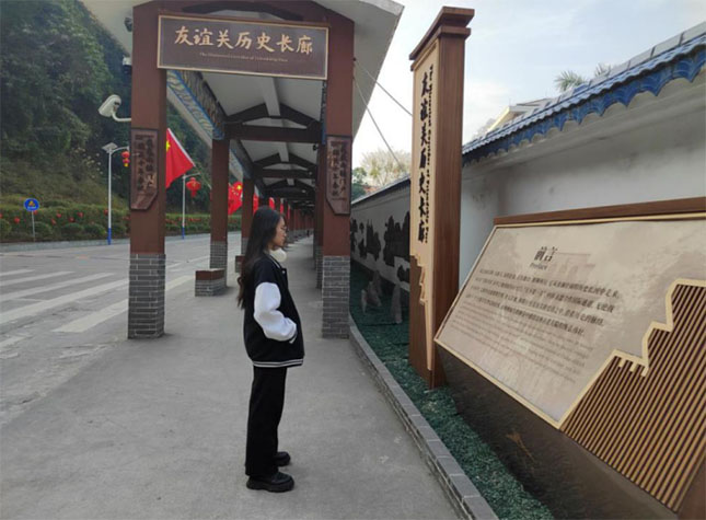 最后語(yǔ)言景觀實(shí)踐隊(duì)來(lái)到友誼關(guān)歷史長(zhǎng)廊進(jìn)行參觀。友誼關(guān)有著悠久的歷史,這座古老的關(guān)隘經(jīng)歷兵家必爭(zhēng)的歲月,度過(guò)作為祖國(guó)南大門和“天下第一關(guān)”的時(shí)光,如今也成為了中國(guó)與東盟的國(guó)際合作通道。實(shí)踐隊(duì)員們通過(guò)走過(guò)歷史長(zhǎng)廊,認(rèn)真了解友誼關(guān)的歷史脈絡(luò),回顧友誼關(guān)數(shù)千年的歲月故事,切身感受到愛(ài)國(guó)主義作為民族精神的核心,弘揚(yáng)愛(ài)國(guó)主義精神對(duì)于鑄牢中華民族共同體意識(shí),維護(hù)民族邊境地區(qū)的穩(wěn)定具有重要意義。