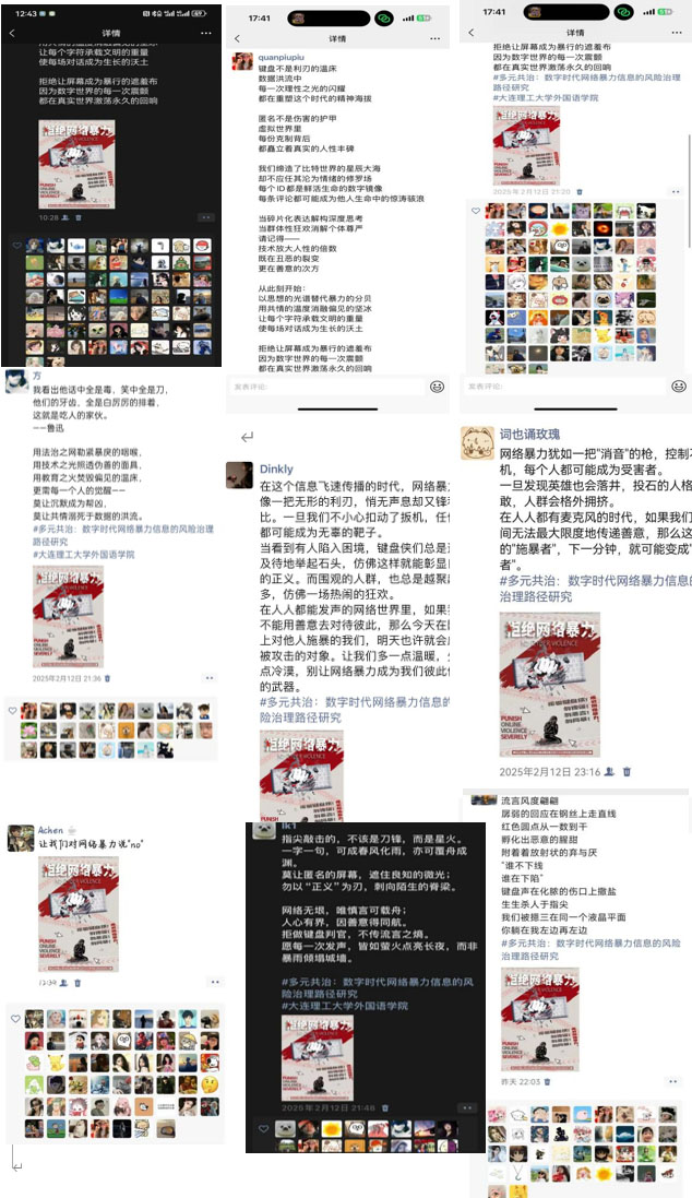 在數字化浪潮洶涌澎湃的當下,網絡暴力問題如影隨形,成為社會亟待解決的難題。大連理工大學外國語學院多元共治:數字時代網絡暴力信息的風險治理路徑研究團隊憑借“數字時代網絡暴力信息的風險治理路徑研究”項目,在第十九屆“挑戰杯”全國大學生課外學術科技作品競賽2024年度“揭榜掛帥”專項賽決賽中榮獲全國二等獎,該項目也獲得了大連聯合大學第二十屆“攀登杯”創新創業競賽決賽校級二等獎。該團隊以“挑戰杯”為依托,深入開展實踐調研與研究分析,為網絡暴力信息治理提供了新思路與新策略。