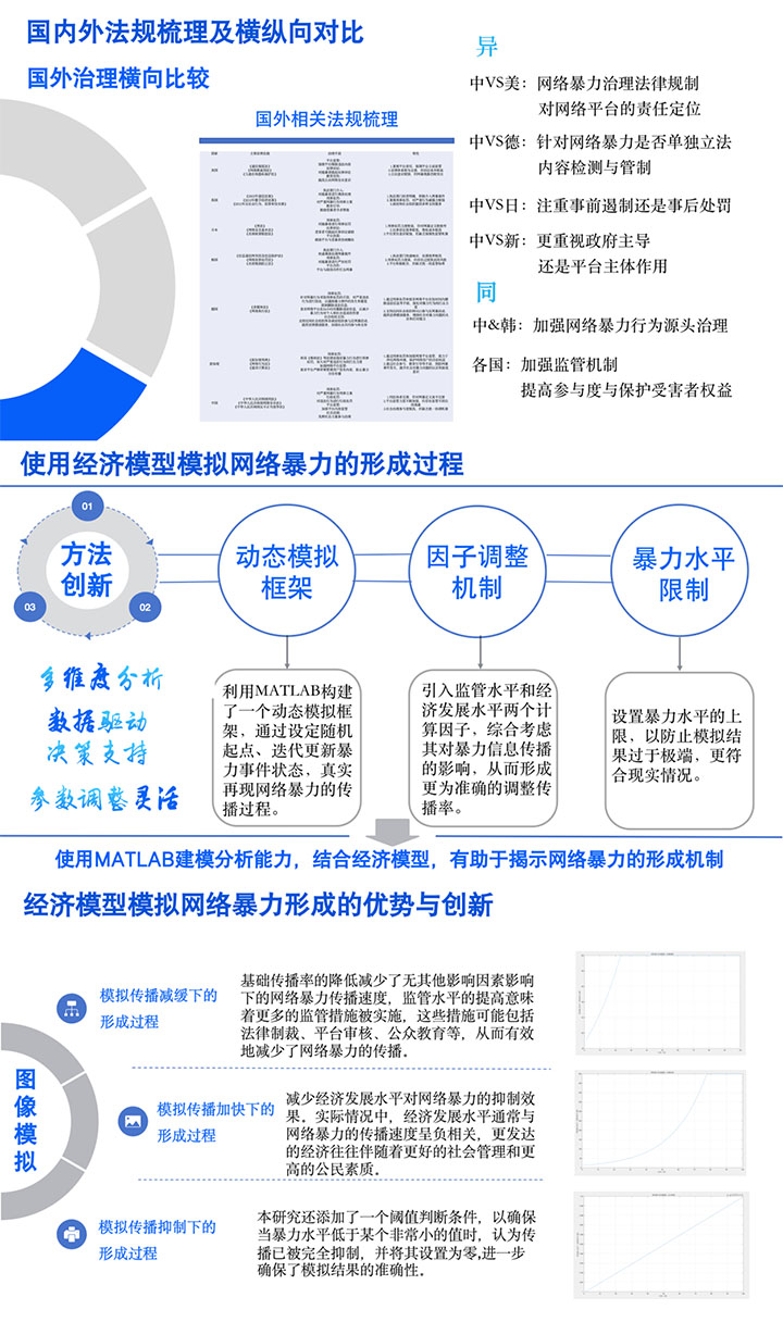通過依托“挑戰杯”的項目研究和實踐訪談,本項目團隊對數字時代網絡暴力信息的風險治理路徑有了更深入的了解。研究成果不僅為網絡暴力的治理提供了科學依據,也為社會各界共同參與網絡暴力治理提供了參考。未來,團隊將繼續關注網絡暴力問題的發展動態,進一步深化研究,為營造清朗的網絡空間貢獻更多的智慧與力量。