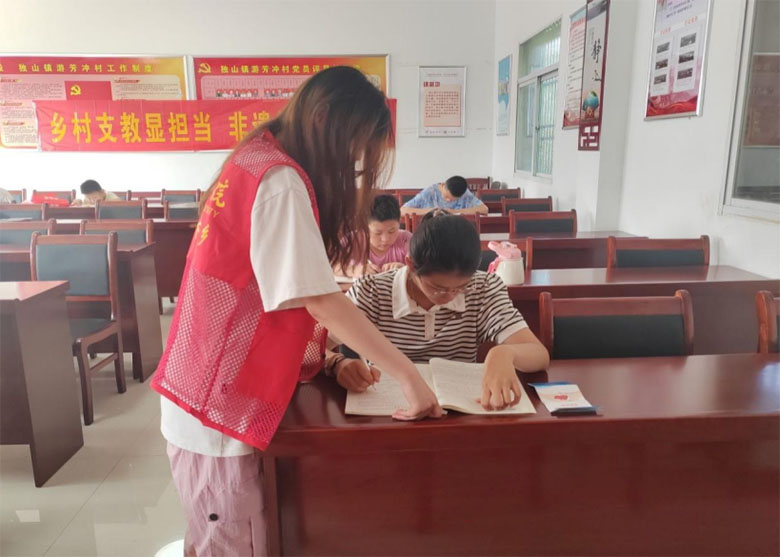 圖為志愿者為初中生在教室里單獨輔導的照片 通訊員 聶曉蕊 供圖