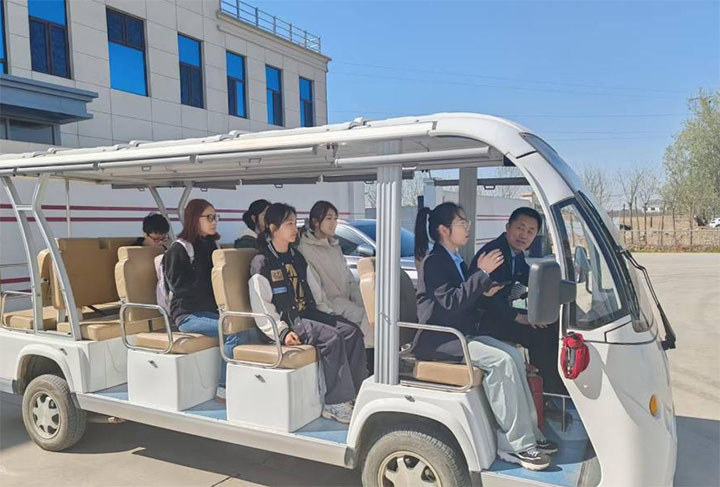 2025年4月,河北大學智鏈青春隊深入保定中聯農國際農產品物流園,實地探訪智慧物流的落地實踐。在工作人員的引導下,團隊成員乘坐觀光游覽車穿梭于園區,詳細了解倉儲分揀、冷鏈運輸、數字化管理等核心環節。園區內,自動化分揀系統高效運轉,智慧種植大棚通過物聯網技術實時監控作物生長,令學子們直觀感受到科技對傳統農業的革新力量。