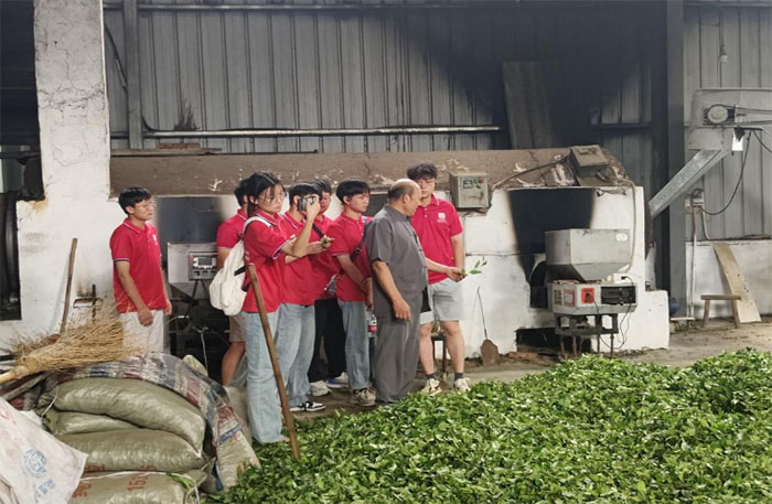 離開(kāi)茶園,隊(duì)員們走進(jìn)了當(dāng)?shù)匾患翌H具規(guī)模的茶葉加工廠。一進(jìn)入車(chē)間,濃郁的茶香便撲面而來(lái)。在茶廠負(fù)責(zé)人的引導(dǎo)和介紹下,隊(duì)員們饒有興趣地觀摩并參觀制茶環(huán)節(jié)。