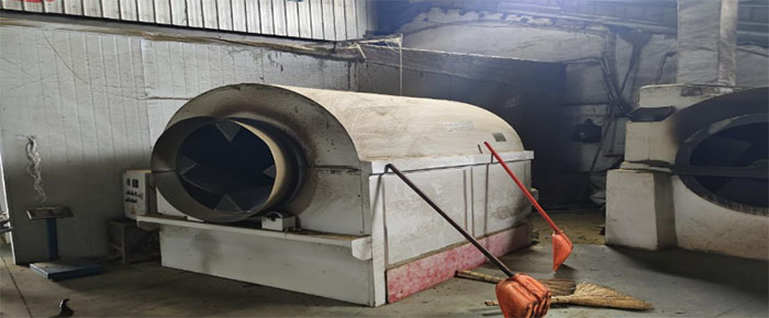 大家看到剛采摘下來(lái)的鮮葉被均勻地鋪在地上,置于陰涼通風(fēng)處,散去部分青草氣和多余水分。等茶葉晾干后,將鮮葉放入鍋中,用高溫快速翻炒,破壞鮮葉中的氧化酶活性,蒸發(fā)部分水分,使茶葉變軟,便于后續(xù)揉捻,同時(shí)散發(fā)青草氣,發(fā)展香氣。
