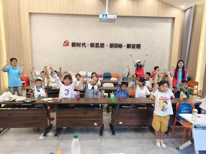 圖7實踐團(tuán)成員和孩子們高興的展示自己的粘土