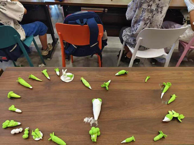 為增強孩子們的家鄉(xiāng)特色意識,實踐團(tuán)將美育與黏土手工結(jié)合,開展制作家鄉(xiāng)特色青蘿卜活動。先介紹左店青蘿卜的特點、種植歷史及在當(dāng)?shù)剞r(nóng)業(yè)中的地位,再指導(dǎo)孩子們用黏土制作。孩子們發(fā)揮想象與創(chuàng)造力,將黏土變成形態(tài)各異的“青蘿卜”,臉上滿是自豪,對家鄉(xiāng)的認(rèn)同感和自豪感悄然滋生。