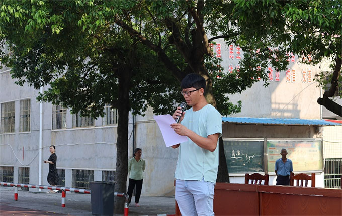 。ㄍㄓ崋T:周丹情、侯雪)7月8日上午,陽(yáng)光灑滿湖南省郴州市宜章縣迎春鎮(zhèn)中心小學(xué)的操場(chǎng),南京財(cái)經(jīng)大學(xué)小風(fēng)鈴支教隊(duì)暑期支教開(kāi)營(yíng)儀式在此正式啟幕。支教隊(duì)全體隊(duì)員與在校學(xué)生齊聚一堂,共同迎接這場(chǎng)跨越千里的教育之約。迎春鎮(zhèn)中心小學(xué)相關(guān)領(lǐng)導(dǎo)、小風(fēng)鈴支教隊(duì)隊(duì)長(zhǎng)及學(xué)生代表先后發(fā)言,為即將開(kāi)啟的兩周夏令營(yíng)注入溫暖與期待。