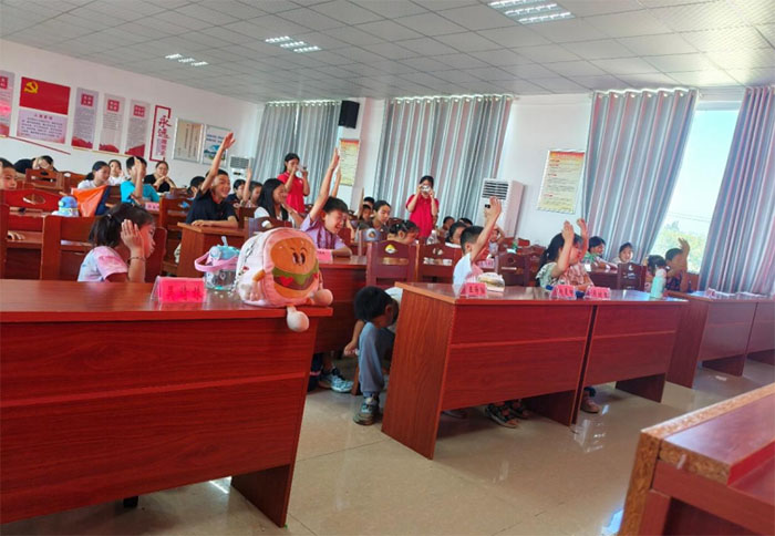 “讀書分享會(huì)”上,志愿者先朗讀故事引趣,再鼓勵(lì)孩子們分享書籍,孩子們講情節(jié)、談感受,在輕松氛圍中體會(huì)閱讀之樂(lè),學(xué)會(huì)傾聽(tīng)與表達(dá)。期間穿插的“趣味問(wèn)答”環(huán)節(jié),志愿者結(jié)合前述活動(dòng)提問(wèn),孩子們踴躍搶答,在互動(dòng)中鞏固所學(xué),讓歡樂(lè)與知識(shí)同增長(zhǎng)。支教分隊(duì)組長(zhǎng)劉燕分享道:“孩子們從拘謹(jǐn)?shù)匠ㄩ_(kāi)心扉的每一步,都印證著愛(ài)與陪伴的力量。這些帶著溫度的課程,不僅點(diǎn)亮了他們的笑容,更讓我們懂得了用心溝通的意義。”