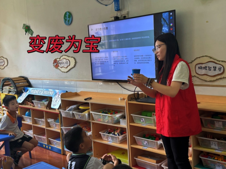環保教育環節以“知行合一”為原則,隊員們通過生動案例解析環境污染危害,結合幼兒生活場景講解低碳生活理念。“廢舊物品創意工坊”中,孩子們利用礦泉水瓶、紙箱等材料制作手工藝品,在動手實踐中理解“變廢為寶”的意義;“垃圾分類競技賽”通過游戲化比拼,強化可回收物、有害垃圾等分類標準的記憶與應用;顒幼詈螅爢T帶領孩子們觀察園內綠植,講解生態保護基礎知識,引導孩子們樹立“愛護自然、守護家園”的主動意識。