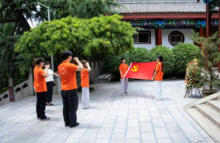 初心如磐:紅色豐碑砥礪前行 青山埋忠骨,熱血鑄豐碑。在莊嚴肅穆的楊虎城烈士陵園,實踐隊成員在紀念碑前重溫入黨誓詞,誓言鏗鏘。楊娜娜老師講授主題黨課并通過影像資料,以楊虎城將軍事跡闡釋“信仰、忠誠、擔當”的深刻內涵。