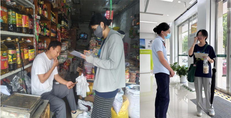 調研過程中,同學們設計了詳盡的問卷,走訪沿街商鋪、餐飲店、便利店、老字號等各類經營主體。大家熱情與商戶交流,詳細記錄商戶對街區改造的期望,包括提升基礎設施、優化交通組織、保留歷史風貌等方面的意見。許多商戶表示,期待通過改造讓街區煥發新活力,同時希望保留崧廈街道原有的文化特色。