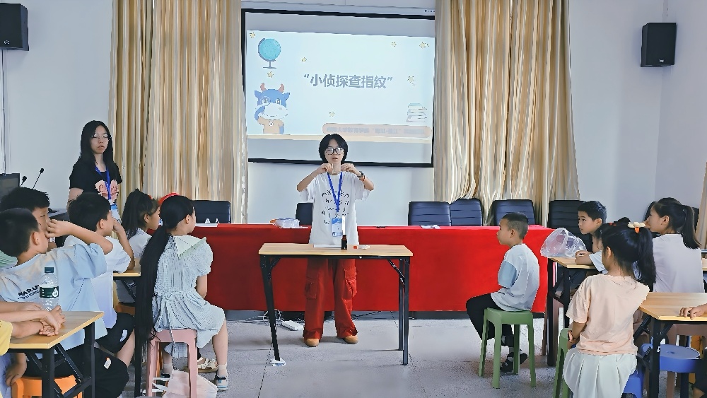 探索指紋奧秘,筑牢隱私保護防線 上午主題活動剛開始,實踐隊員就化身為“科學(xué)偵探”,帶領(lǐng)孩子們開啟指紋探秘之旅。實踐團隊先為孩子們介紹實驗需要用到的材料并演示具體操作步驟,然后為孩子們發(fā)放實驗材料,并在一旁協(xié)助孩子們自己動手操作。