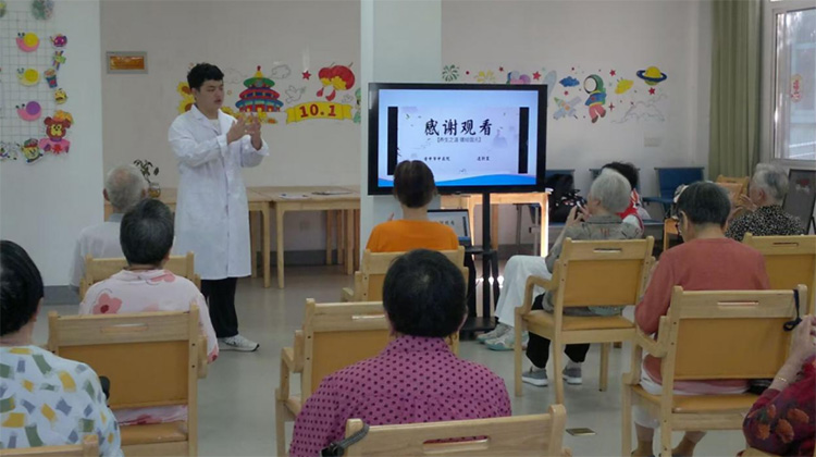活動現場,實踐隊員化身健康科普宣傳員,針對高血壓、糖尿病等老年高發慢性病,通過“醫學知識+生活案例”的生動講解,將專業術語轉化為“聽得懂、記得住、用得上”的健康指南,為老人們送上科學養生的“及時雨”。特別設計的“指尖健康操”互動環節,讓老人們在輕松的音樂中活動關節,實踐隊員手把手教學指導,指尖躍動間不僅鍛煉了肢體協調能力,更搭建起情感溝通的橋梁,使健康宣教在歡聲笑語中入腦入心。