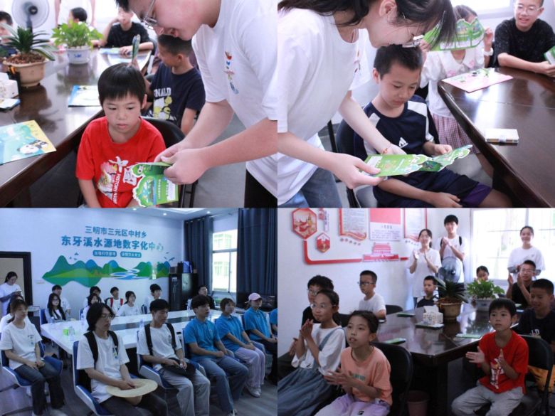 實踐隊首站走進中村鄉思源社區,面向當地兒童開展環保知識宣講,通過互動講解傳遞閩江源保護理念;隨后,隊員們前往東牙溪水源數字化中心,與鄉鎮干部圍繞河道巡查、污水治理等工作展開座談。鄉水利工作負責人詳細介紹了“河長制”落實成效及基層護河經驗,并與隊員就青年參與生態治理的可行路徑進行深入交流。