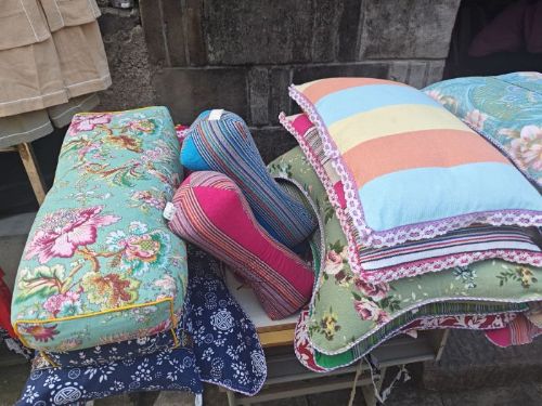 初入長勝街,一間陳列著斑斕織錦的紅安大布店鋪便抓住了我們的視線。店內,色彩濃郁、紋樣古樸的大布無聲陳列,大家對精美的紅安大布毫不吝嗇贊美之詞。