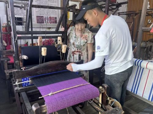 在陶師傅和陶母熱情的引領與講解中,我們得以近距離觀察那些承載時光的古樸織機。參觀之后我們一起觀看了一段精心制作的紅安大布宣傳片,更讓我們沉浸于這項非遺技藝的獨特魅力。