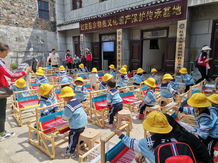 跟隨陶師傅的腳步,我們來到了深藏底蘊的紅安縣非物質文化遺產保護傳承基地。令人動容的是,這里不僅是技藝的殿堂,更是陶師傅溫暖的家園——他的母親與女兒也生活于此。一家三代,扎根于此,這份對紅安大布的深厚情感與矢志不渝的傳承決心,不言而喻。