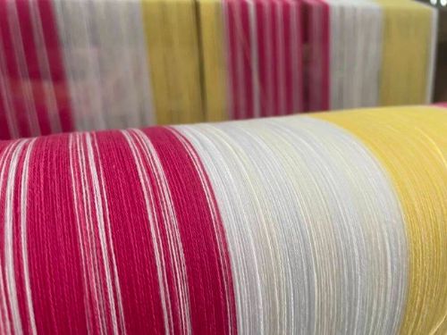 陶師傅還向我們展示了織在紅安大布上的《黃安謠》。陶師傅將《黃安謠》的詞句化作布面上的星火圖騰——用赭紅鋪成歷史底色,以金黃勾勒出“小小黃安,人人好漢,銅鑼一響四十八萬,男將打仗,女將送飯”的字樣,讓飛梭在經緯間穿梭出永不褪色的革命記憶。