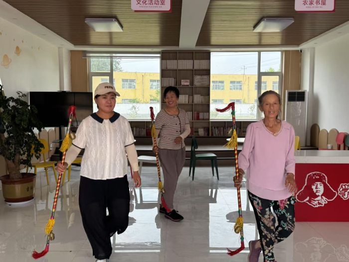 隨后,在文化場所內(nèi),志愿者們現(xiàn)場觀看了花桿舞表演,隨后從基礎動作學起,反復練習揮舞花桿的技巧,力求掌握整套舞蹈的連貫演繹。在練習中,大家更真切地體會到每一個轉身、每一次揮桿中承載的鄉(xiāng)土記憶與老一輩生活智慧。“親身體驗后才明白,這些動作里藏著的不僅是技巧,更是一代代人的情感。”參與學習的志愿者王同學說。