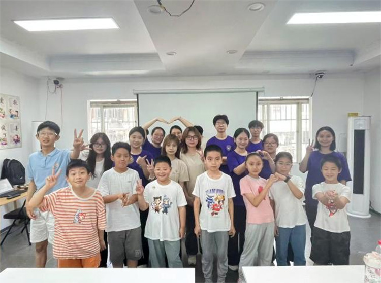 三、青春回響:以熱愛赴使命,讓信仰譜新篇 十一天的的陪伴中,志愿者們用專業(yè)設計課程,用耐心引導成長,讓“以樂育人、以文化人”的理念落地生根。紅色教育播撒的愛國種子、非遺體驗埋下的文化根脈、藝術熏陶滋養(yǎng)的自信萌芽,共同構成孩子們暑期最珍貴的成長禮物。