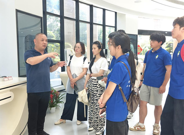 浙江兆豐機(jī)電公司副總給實(shí)踐團(tuán)講解產(chǎn)品