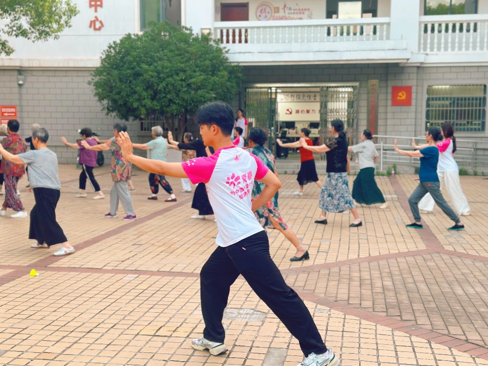 7月3日至4日傍晚時分,安徽師范大學(xué)體育學(xué)院赴合肥市瑤海區(qū)七里站街道恒通社區(qū)“陽光體育”愛心夏令營本科生暑期社會實踐團隊走進合肥市恒通社區(qū),開展為期兩天的“銀齡守護”太極拳教學(xué)活動。本次活動以“傳承非遺文化,守護銀齡健康”為主題,由10余名體育教育專業(yè)學(xué)生組成的實踐團隊,為社區(qū)10余位老年人帶來專業(yè)的太極健身指導(dǎo)。該活動旨在弘揚中華傳統(tǒng)體育文化,通過太極拳教學(xué)為社區(qū)老年人送去健康關(guān)懷,豐富社區(qū)老年人的精神生活,促進身心健康,同時增強大學(xué)生服務(wù)社會的責(zé)任意識,提升大學(xué)生社會實踐能力。
