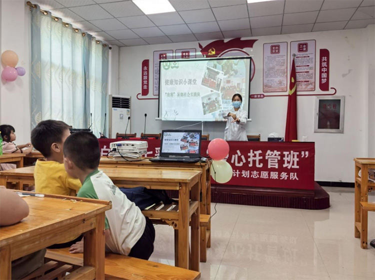 2025年7月8日,武漢東湖學(xué)院護(hù)理與健康管理學(xué)院“凌霄”實踐隊在湖北省咸寧市崇陽縣白露村開展了兒童衛(wèi)生宣教與中草藥知識普及活動,對兒童進(jìn)行衛(wèi)生知識宣傳和中草藥知識分享。