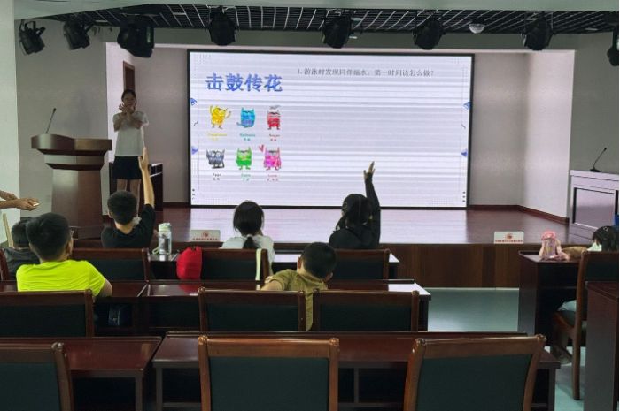 隨后,志愿者還開展了防溺水安全講座,通過PPT講解、情景描述與動畫插圖相結(jié)合的方式,講述了夏季玩水過程中的危險行為、防護(hù)要點(diǎn)與緊急應(yīng)對方式。講解特別強(qiáng)調(diào)“游泳必須有大人陪伴”“發(fā)現(xiàn)他人落水不要貿(mào)然跳入”“穿好救生衣、帶好浮具”等常識性要點(diǎn),真正做到用孩子聽得懂、記得住的話語講出科學(xué)正確的內(nèi)容。