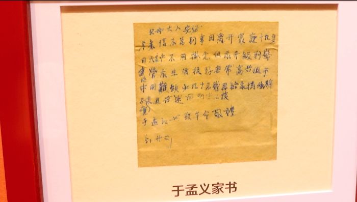 在“男兒血灑戰場——于慶春一家人”展區,一段滿門忠烈的革命事跡徐徐展開。1941年2月,于慶春毅然投身革命,擔任村自衛團長。隨后,其長子于孟君、次子于孟臣、三子于孟義亦相繼奔赴抗日戰場。展柜中陳列的于氏家書,于泛黃的信箋上靜靜訴說著"祖母大人安好……"的思念。質樸的文字不僅承載著革命戰士對至親的深切掛念,更彰顯出在民族危亡之際,他們舍小家為大家的堅定信念與英勇擔當。民族危亡時,于家父子放下思念,以熱血赴使命,最終,次子于孟臣、三子于孟義犧牲在戰場。這些家書作為珍貴的歷史文物,真實記錄并見證了于氏父子將個人命運融入家國大義的崇高精神。