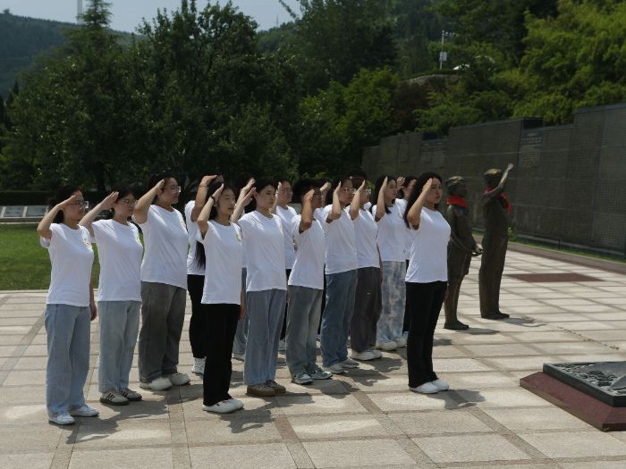 參觀活動結束后,實踐團成員于戶外紀念區域有序列隊,面向革命先輩們的浮雕莊嚴敬禮。全體成員身姿挺拔、動作規范,以標準的禮節深切緬懷革命先烈,致敬先輩的崇高精神,充分展現賡續紅色血脈、傳承革命傳統的堅定信念。
