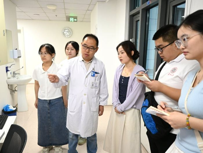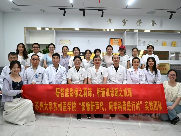 為深入探討智慧醫療項目及前沿醫學技術的實際成效和發展前景,實地探索放射科智能化建設與醫改政策實施情況,學習AI輔助診斷、大數據等技術在放射診療中的創新應用狀況,為醫學生理解行業變革提供新視角。7月7日下午,“影像新聲代,研學科普進行時”實踐團積極響應國家“互聯網+醫療健康”戰略部署及江蘇省深化醫改政策要求,走進蘇州大學附屬第一醫院放射科開展專題調研。