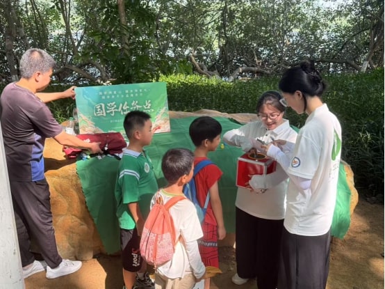 "君子德道"實(shí)踐隊(duì)聯(lián)合大龍街團(tuán)工委、城市花園居委開(kāi)展國(guó)學(xué)公益夏令營(yíng),創(chuàng)新設(shè)計(jì)"國(guó)學(xué)+"體驗(yàn)課程,重點(diǎn)打造“行走的國(guó)學(xué)課堂”,于7月6日在番禺大夫山森林公園開(kāi)展了一場(chǎng)別開(kāi)生面的"國(guó)學(xué)健步行"活動(dòng)。此次活動(dòng)吸引了 120 余名親子家庭與志愿者參與,大家沿著綠意盎然的林間步道前行,在3公里徒步過(guò)程中穿插著詩(shī)詞接龍、植物面具制作、投壺、蹴鞠等游戲打卡互動(dòng)環(huán)節(jié)。這種將體育健身與文化傳承相結(jié)合的新穎形式,讓國(guó)學(xué)教育走出課堂,走進(jìn)自然,獲得了家長(zhǎng)和孩子們的一致好評(píng)。