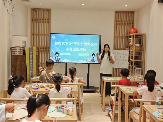 夏令營(yíng)課程精心設(shè)計(jì)了多項(xiàng)非遺體驗(yàn)項(xiàng)目:在二十四節(jié)氣泥塑課堂上,孩子們用雙手塑造出四季更迭的物候變化;在油紙傘DIY區(qū),一幅幅充滿童趣的傳統(tǒng)圖案躍然傘面;在《中華孝道》手勢(shì)舞教學(xué)中,孩子們用整齊的動(dòng)作詮釋對(duì)傳統(tǒng)美德的理解。這些寓教于樂(lè)的活動(dòng),讓傳統(tǒng)文化以更生動(dòng)的方式走進(jìn)孩子們的心里。