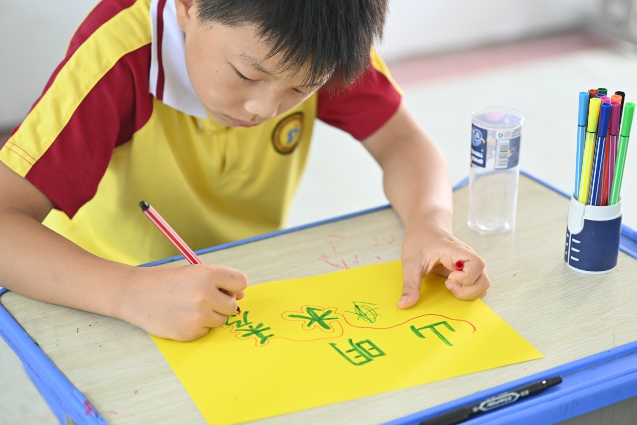 圖為小朋友正在美工課上制作節(jié)水護(hù)水的卡紙 農(nóng)姚 陳立志攝