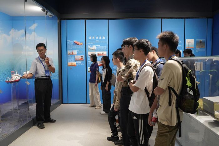 在船舶文化館內,營員們系統了解了中國船舶從古至今的演進歷程。從鄭和寶船的精巧到現代巨輪的恢弘,豐富的模型與圖文史料生動展現了船舶技術的飛躍與國家海洋事業的成就。營員們認真聆聽講解,對展品表現出濃厚興趣,深刻感受到源遠流長的船舶文化魅力與現代科技的蓬勃力量。