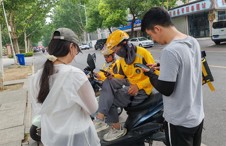 駱馬湖畔:街頭巷尾的靈活對話 宿遷的調研策略更顯靈活。團隊成員活躍在外賣員高頻出現的餐飲街區和社區快遞網點附近。在泗洪縣的街頭巷尾,與美團、京東等不同平臺騎手的交談中,成員們留意到從業者個體間對社保認知的巨大差異,以及他們提及的與平臺簽訂協議時的種種細節。這些來自新興城市的鮮活聲音,同樣揭示了平臺經濟快速發展中亟待關注的保障問題。