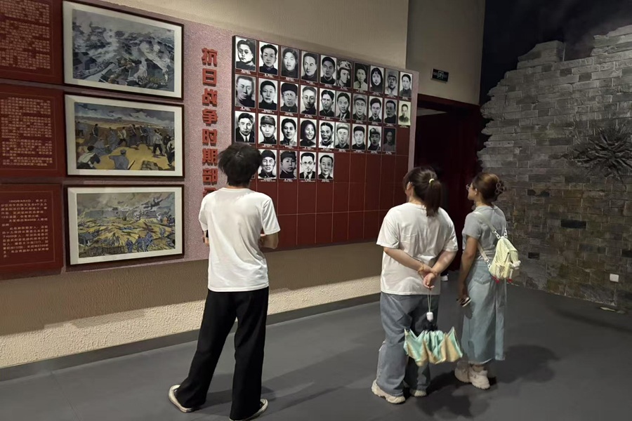 踏入抗戰(zhàn)史料館,展柜圖文與墻上老照片靜列。團隊成員默默舉手機,將游擊軌跡、支前畫面定格。屏氣凝視間,八十載烽火余溫,悄然烙進青春目光里 。