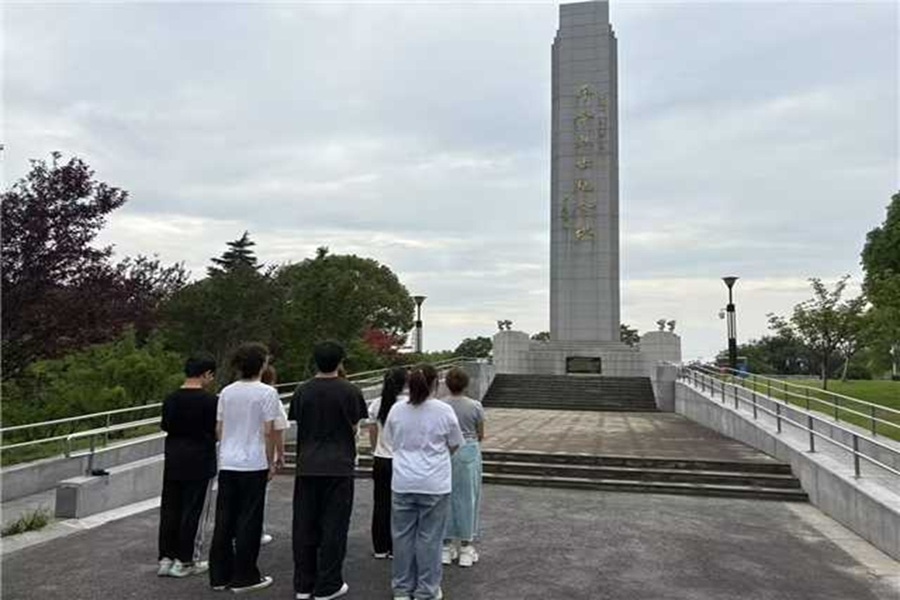多彩大學生網(wǎng)訊(通訊員沈淑芳)為紀念中國人民抗日戰(zhàn)爭暨世界反法西斯戰(zhàn)爭勝利80周年,南京師范大學泰州學院“揚抗戰(zhàn)精神,礪青春擔當”暑期社會實踐團隊部分團隊成員,帶著提前整理的泰州抗戰(zhàn)史料、裝著疑問與熱忱的筆記本,于6月19日踏入江蘇省泰州市海陵區(qū)烈士陵園。炎炎夏日的陽光透過蒼松翠柏,在碑身投下細碎光影,那些被風雨磨出包漿的“抗戰(zhàn)英烈永垂不朽”銘文,恰似歷史凝固的嘆息。團隊成員們腳踩先輩浴血守護的土地,要在蒼松的低語里、碑石的紋路間,以青春視角剖開時光褶皺,打撈80年前蘇中大地的抗戰(zhàn)星火——那些游擊隊員的足跡、群眾支援的故事,正等待被年輕的目光重新點亮。