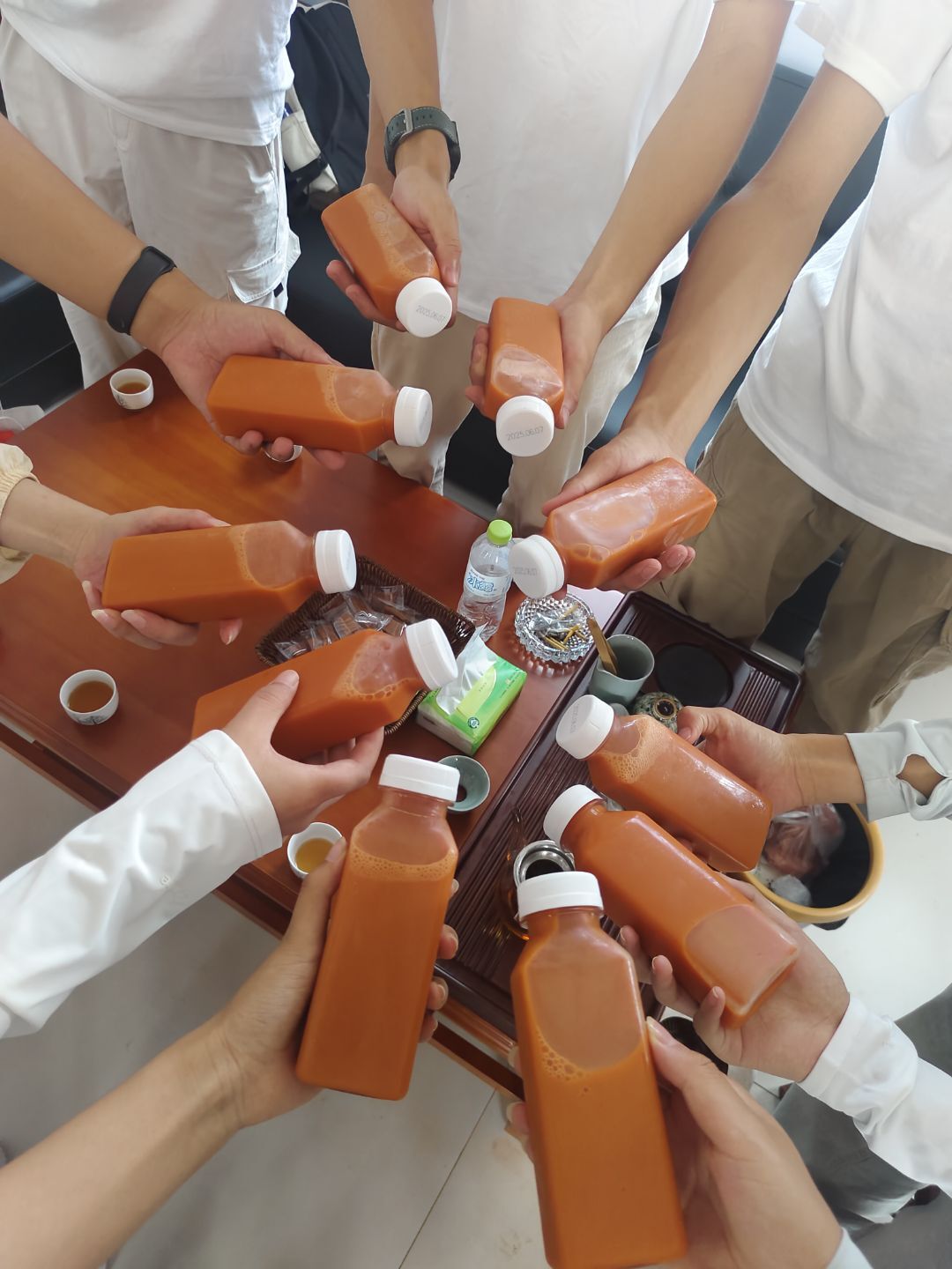 在交流過(guò)程中,我們了解到農(nóng)場(chǎng)在“藥食同源”領(lǐng)域的一些創(chuàng)新嘗試。以胡蘿卜為例,它不僅是一種常見的蔬菜,更是被轉(zhuǎn)化為了豐富的經(jīng)濟(jì)銷售渠道。農(nóng)場(chǎng)購(gòu)置了榨汁房車,深入到城市的各個(gè)角落,現(xiàn)場(chǎng)為消費(fèi)者提供新鮮的胡蘿卜汁,這種新穎的銷售方式深受市民喜愛(ài)。同時(shí),農(nóng)場(chǎng)引入了HPP冷鏈保存技術(shù),極大地延長(zhǎng)了胡蘿卜汁的保存時(shí)間,使其能夠在更廣泛的市場(chǎng)范圍內(nèi)銷售。此外,胡蘿卜還被加工制成果干等小零食,對(duì)外售賣,進(jìn)一步拓展了產(chǎn)品的附加值。
