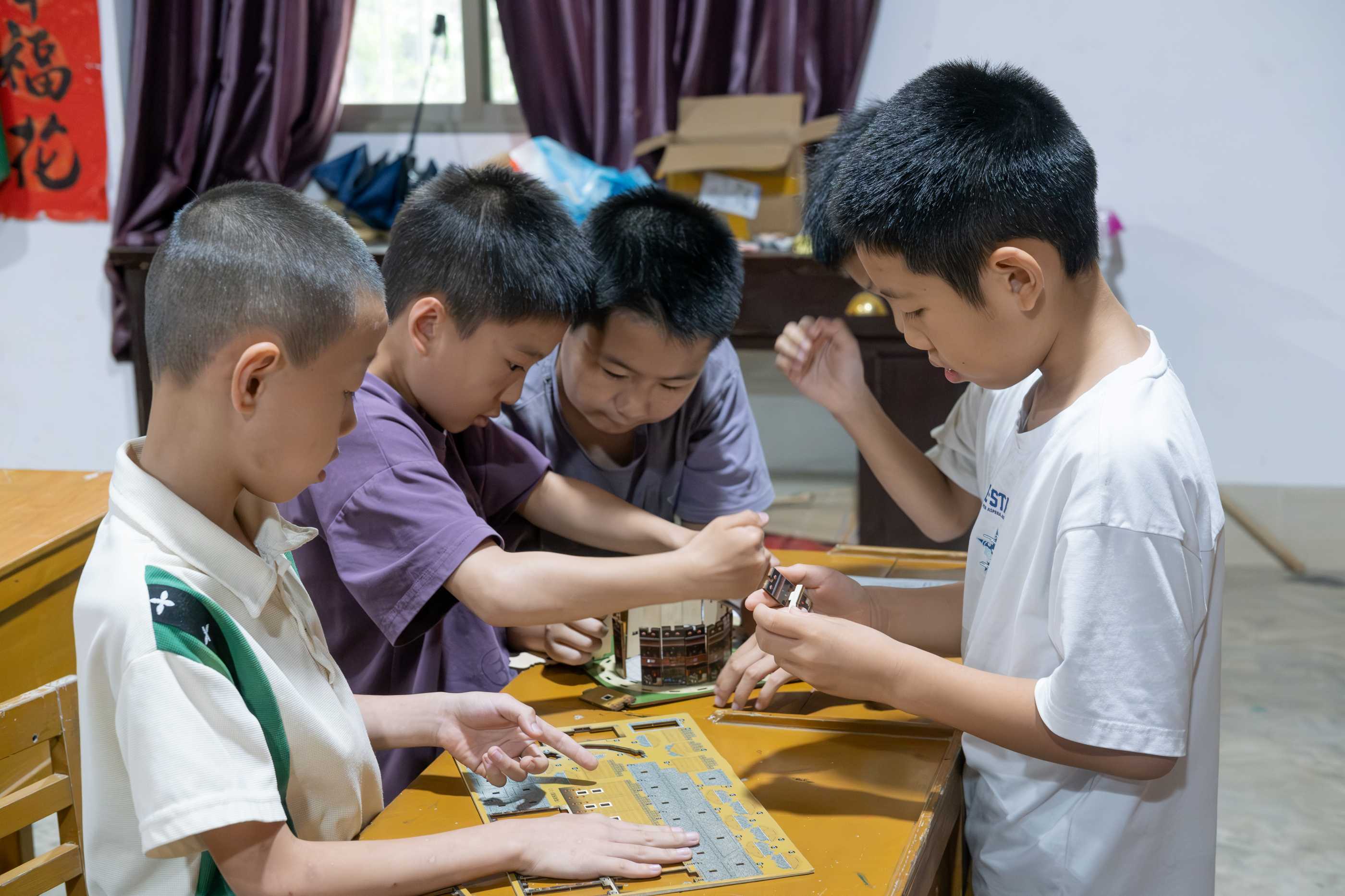 學生們合作拼接圍屋模型