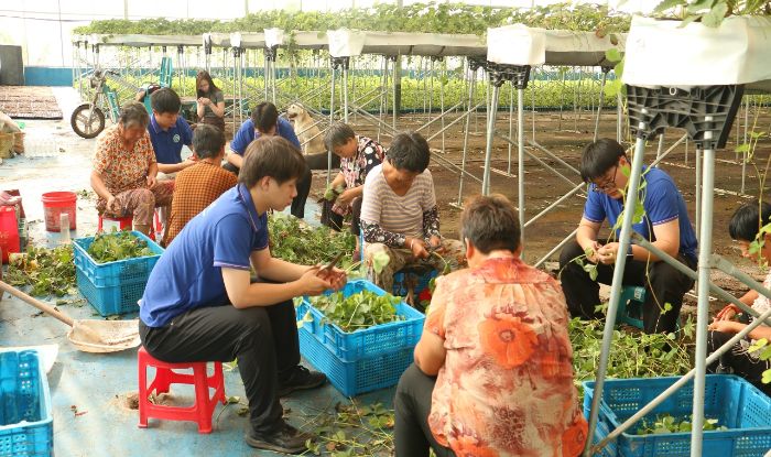 在凱駿農業示范園,一部分學生與基地負責人進行訪談,用成本核算知識梳理“每顆草莓的成本構成”;另一部分則參與育苗育種,體會精細化管理對效益的影響。