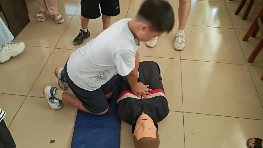義教期間,突擊隊與僑中師生積極推進安全課程。在《消防與用電安全》課堂上,僑中師生通過視頻教導與案例分析的方式,教授了學生火災逃生、正確用電方法,為學生們講解了遇險時的應對步驟。而《防溺水安全》課程則結合英紅鎮水域特點進行教學,并帶領學生們現場進行心肺復蘇演練,學習自救與互救技能。除了安全教育課堂,活動還同步開設了心理健康課程。《正確認識自己》、《情緒管理》等心理課堂引導學生全面認識自身優缺點、學會調節情緒,為鄉鎮孩子們的健康成長保駕護航。