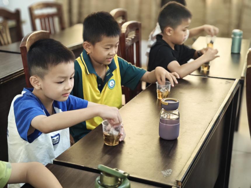 如《茶葉中葉綠素的提取》實驗,學生們在突擊隊隊員的指導下,經過研磨、過濾等步驟,成功提取出葉綠素,理解光合作用原理。又如《英德“紅”茶》課程,通過介紹英德紅茶歷史、講解紅茶制作中“萎凋(水分蒸發)、揉捻(細胞破碎)、發酵(酶促反應)、干燥(固化品質)”的四大原理與開展紅茶沖泡實踐,讓學生在茶香中感受本土文化與生物知識的融合。