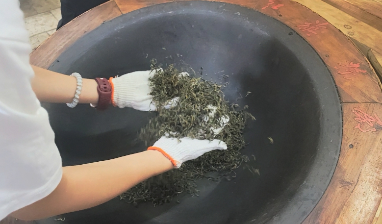 突擊隊員體驗炒茶工藝 羅子健供圖