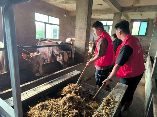 實踐團首站深入漢濱區鴻緣生態養殖場,聚焦現代肉牛養殖技術。在牛舍一線,成員們系統調研養殖規模、疫病防控及市場瓶頸,實地學習通風布局、墻體保溫等傳統牛舍關鍵技術。飼料配制區成為重要課堂:成員們嚴格遵循科學配比,親手完成原料混合、青貯發酵等全流程操作。當目睹牛群健康進食親手調配的飼料,抽象理論化為可觸的生產力。“這讓我們深刻認識到,科技是降低養殖成本、提升品質的基石,精準回應著農戶最迫切的需求。”隊員們感慨道。