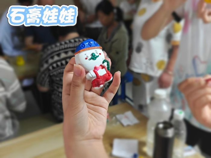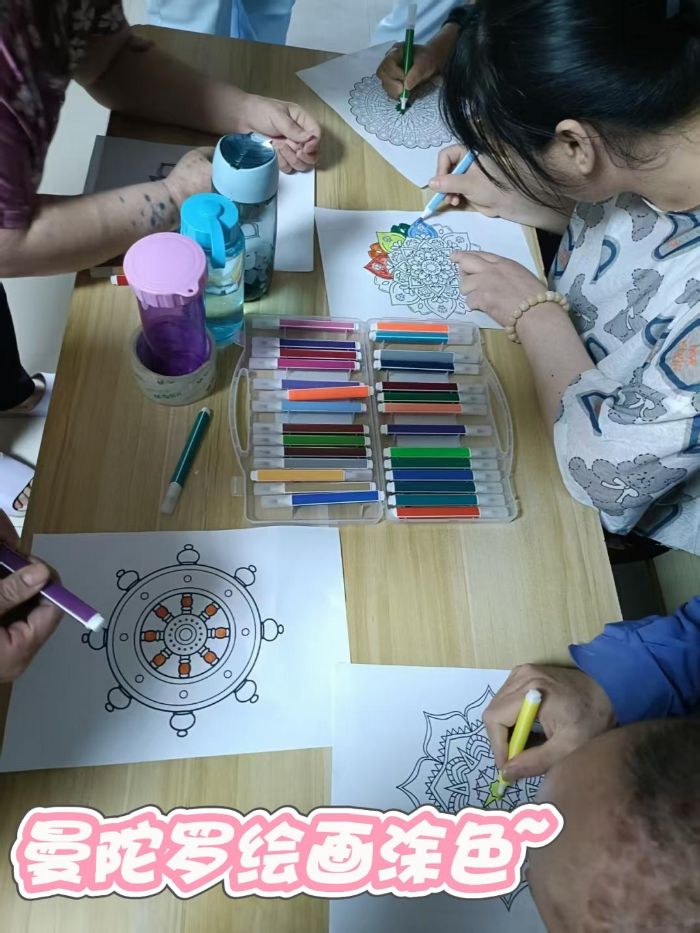 尚美怡心,點亮心靈色彩。臉譜繪畫的桌子剛擺好,患者們就被那些色彩鮮明的圖案吸引了。志愿者笑著鋪開畫紙、遞上彩筆,輕聲引導:“跟著感覺來就好,怎么畫都好看”,有人勾勒線條,有人大膽換了自己喜歡的顏色,說“我想畫個不一樣的”。志愿者笑著點頭:“當然可以,美本來就沒有標準答案。”石膏娃娃涂色時,更像是一場創意的狂歡——有人給娃娃涂了彩虹色的裙子,有人在娃娃臉上畫了小雀斑,每一件作品都帶著獨特的個性。曼陀羅繪畫則安靜許多,大家握著彩筆在圓形圖案里填充顏色,有人選了柔和的藍綠,說“看著心里平靜”;有人用了鮮艷的紅黃,說“想讓它熱鬧點”。最驚喜的是折紙環節,志愿者教大家折百合花、千紙鶴,有人學得慢,就反復拆了重折,志愿者在一旁耐心等著,直到一只歪歪扭扭的千紙鶴在手中展開翅膀。這些色彩與線條,早已超越了藝術本身,成了患者們內心的鏡子,也是志愿者與他們之間無聲的對話。當“你比我猜”的題板翻到“喜羊羊”時,有人眼睛一亮,立刻雙手在頭頂比出兩個彎彎的角,蹦跳著晃了晃身子,又用手指了指自己的笑臉。起初大家愣了愣,隨即有人拍手:“是喜羊羊!”答案脫口而出的瞬間,滿屋子的笑聲撞在一起,連模仿的人都叉著腰笑彎了腰,方才還陌生的臉龐,此刻都亮著一樣的歡喜——這便是美育里的自在表達,不用琢磨姿勢好不好看,跟著心里的雀躍去比劃,那份鮮活的快樂,本身就是最動人的樣子。讓大家在美的世界里,都找到了屬于自己的那份寧靜與快樂。