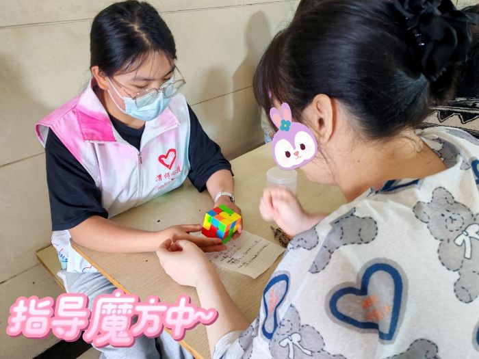 啟智明心,深化專業實踐。“你畫我猜”的游戲一開始,活動室就熱鬧起來。志愿者畫出簡筆畫的輪廓,患者們爭相猜測——“是日月!”“不對,是盟!”笑聲中,志愿者默默觀察著每個人的反應:有人思維敏捷,立刻抓住關鍵特征;有人需要多些提示,才能慢慢聯想。這正是心理學中認知發展理論的生動體現,志愿者們順勢調整引導方式,讓每個參與者都能跟上節奏。接著是飛行棋與象棋對弈,棋盤前,有人謹慎布局,有人大膽進攻,志愿者在一旁適時點撥,將教育學中的互動技巧化作一句“要不要試試換個思路?”。最讓人專注的是魔方教學,志愿者從最簡單的一面還原開始,一步步講解邏輯步驟,看著患者們從手忙腳亂到逐漸熟練,眼里的成就感藏不住。當“誰是臥底”的卡片分發下去,指尖劃過卡片的沙沙聲里,有人已經悄悄抬眼打量四周。隨著“開始描述”的話音落下,大家你一言我一語地開口:“是一種動物”“會出現在動畫片里”……聲音從遲疑到清亮,連最靦腆的孩子都跟著小聲補充。志愿者混在中間,故意說錯一個特征,引得一陣反駁,原本緊繃的氣氛瞬間松快下來,有人邊笑邊擺手,有人急著舉高卡片想證明自己,討論聲像春日枝椏上的新葉,一簇簇地冒出來,帶著蓬勃的生氣——這正是智育里的協作與應變,不是刻意的“表現聰明”,是被氛圍帶著,自然而然就想加入、想表達,機靈勁兒就這么順著笑意淌了出來。這些瞬間讓志愿者懂得,專業知識不是書本上的文字,而是能靈活運用的工具,當理論變成實實在在的引導,“學用結合”才有了真正的意義。