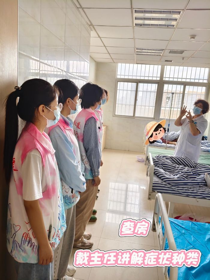 查房過程中,病區主任和隨行醫生一邊細致詢問每位患者的身體狀況、住院感受,一邊結合具體病例科普常見心理癥狀,尤其重點講解了創傷后應激障礙的典型表現與判斷要點。聽著醫生將理論知識與臨床實例結合的講解,志愿者們既直觀感受到了心理疾病診療的復雜性,也深刻體會到“對癥溝通”的重要性。他們明白,面對患者,不僅要依靠專業知識判斷癥狀,更要通過耐心傾聽,捕捉藏在情緒背后的需求。這種“理論落地于實踐”的教學方式,讓大家對心理健康工作有了更深刻的認知,觸摸到了這份工作的溫度與深度。帶著這份感悟,團隊成員懷揣初心逐夢,踐行使命篤行,結合心理學、教育學等專業特長,圍繞查房學習、互動活動、復盤總結三大板塊展開服務。在后續實踐過程中,志愿者們以感悟為指引,通過“五育潤心”系列活動進一步傳遞關懷、深化服務,讓每一份付出都緊扣初心與使命,在具體行動中充分彰顯專業價值。